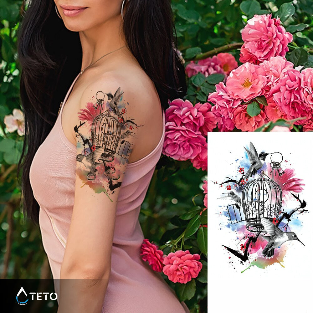 Significado del tatuaje: Los tatuajes de pájaros representan la libertad. Simboliza la independencia, la autosuficiencia y el poder de la autorrealización. A modo de guía, el pájaro nos anima a movernos desde la comodidad y atrevernos a ir más alto y más lejos, aprender más, hacer más, ser más.