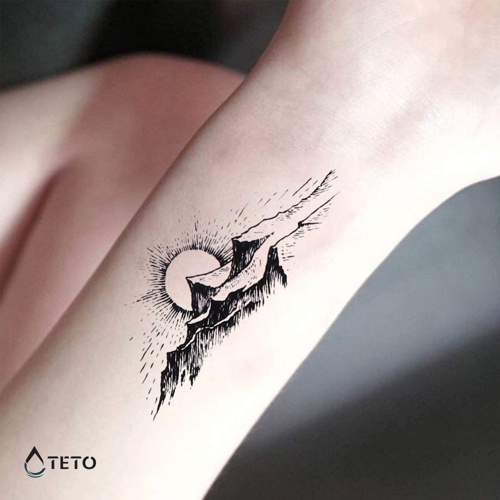 Significado del tatuaje: Las montañas representan un espíritu inquebrantable de fuerza y coraje. También pueden representar el gran viaje de la vida de una persona. Las cimas altas y bajas de las montañas indican altibajos durante nuestro "viaje" por la vida.